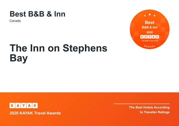 Congratulations! The Inn on Stephens Bay was just granted the KAYAK Travel Awards for 2021.