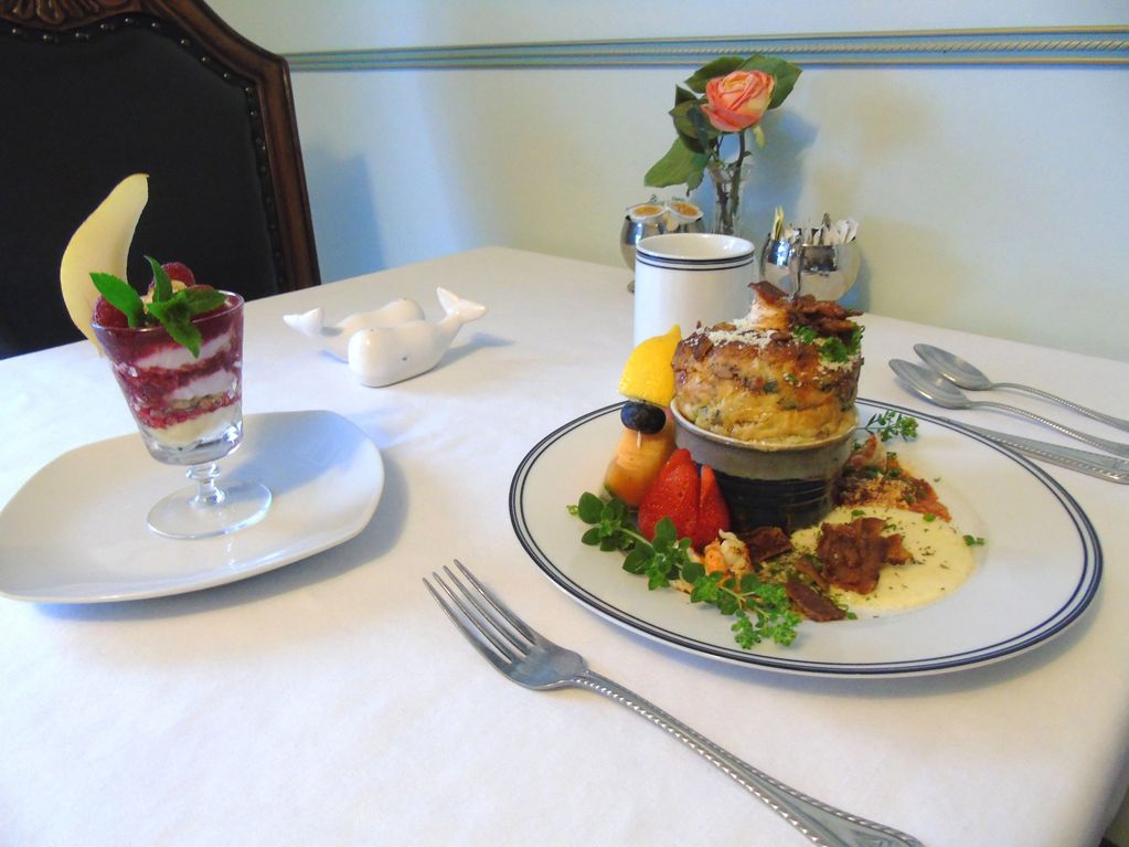 "The included breakfasts were gourmet: eggs florentine with crab the owners harvest themselves and strudel french toast were our two main courses along with coffee, tea, fresh juice and yogurt parfait. The plate presentation was what you'd expect at a Michelin rated restaurant."